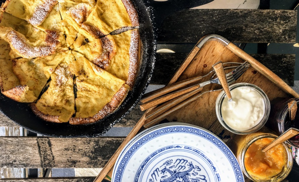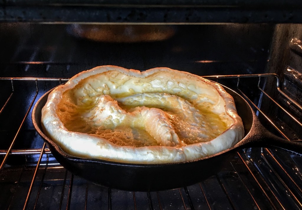 - Melt butter in a heavy skillet, pour in batter and place in oven