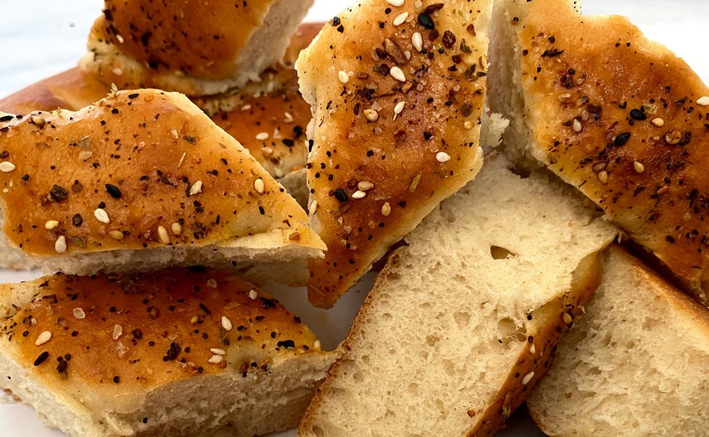 - Try as I might, I could not find nigella seeds, so I sprinkled some oregano (they taste a little bit like that) and also some everything bagel seasoning because of the black and regular sesame seeds.