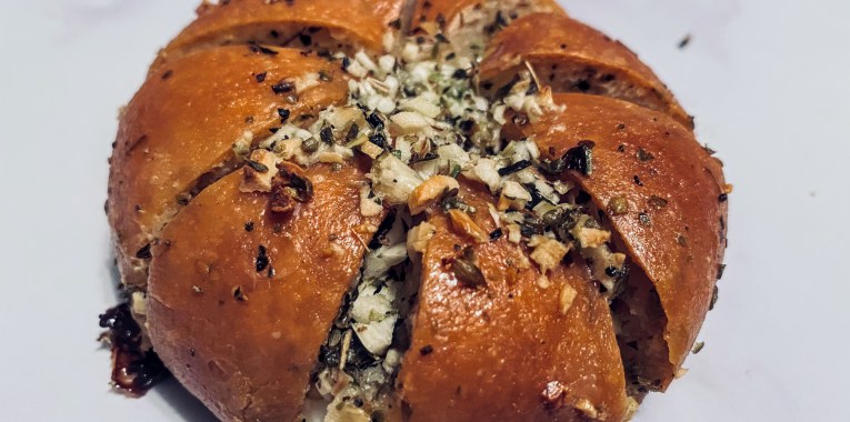 KOREA: Cream cheese garlic bread is a beloved street food in Seoul, can be a bit of an acquired taste for some of us. It’s chock full of garlic and herbs, but the sauce is sweet, which is not uncommon in Asia as many breads lean heavily towards being dessert-style. You can buy already made dinner rolls and just stuff them, but it’s fun to make the rolls, and then you’re guaranteed to have the correct shape and consistency.