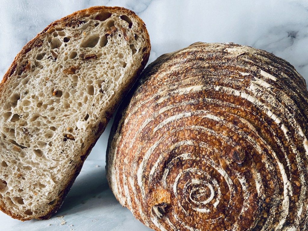 As with most sourdoughs, you have to feed your starter the night before, and it’s best if you use a Dutch oven, or some similar heavy-duty pot with a lid.