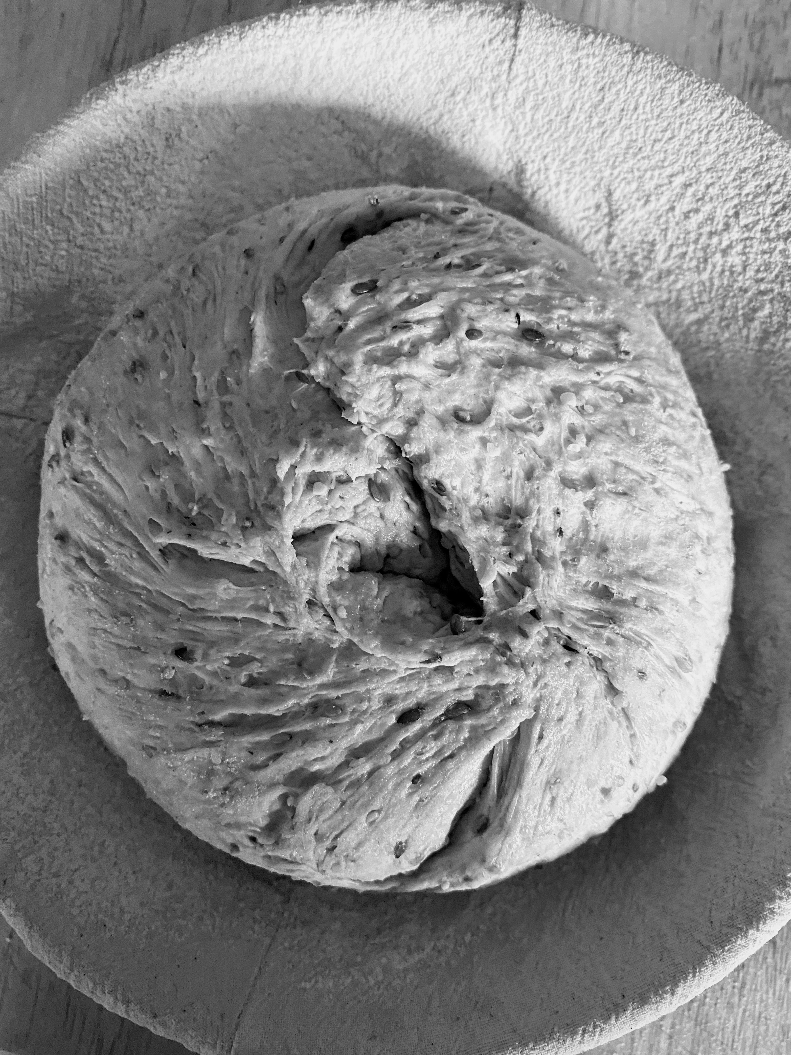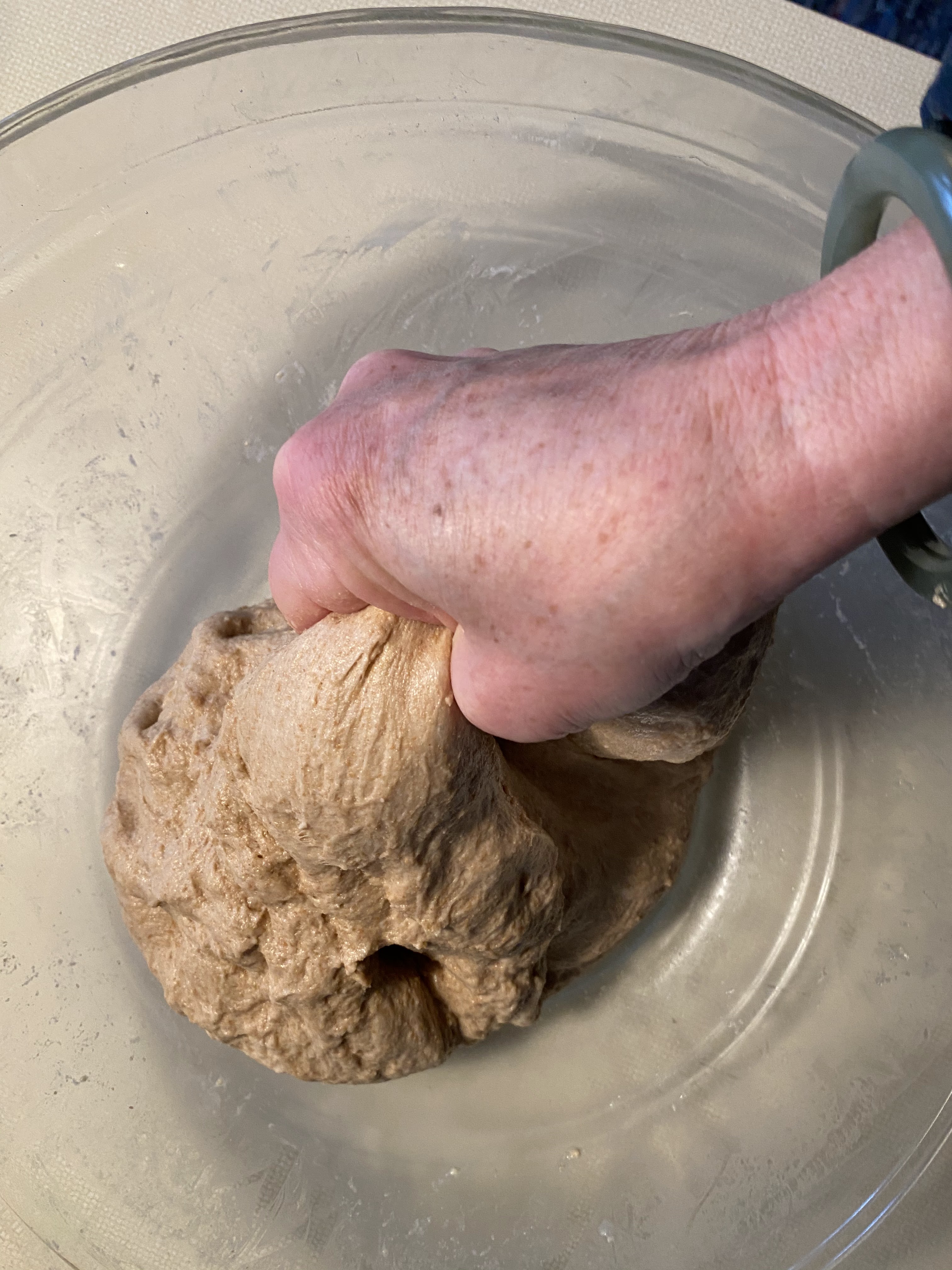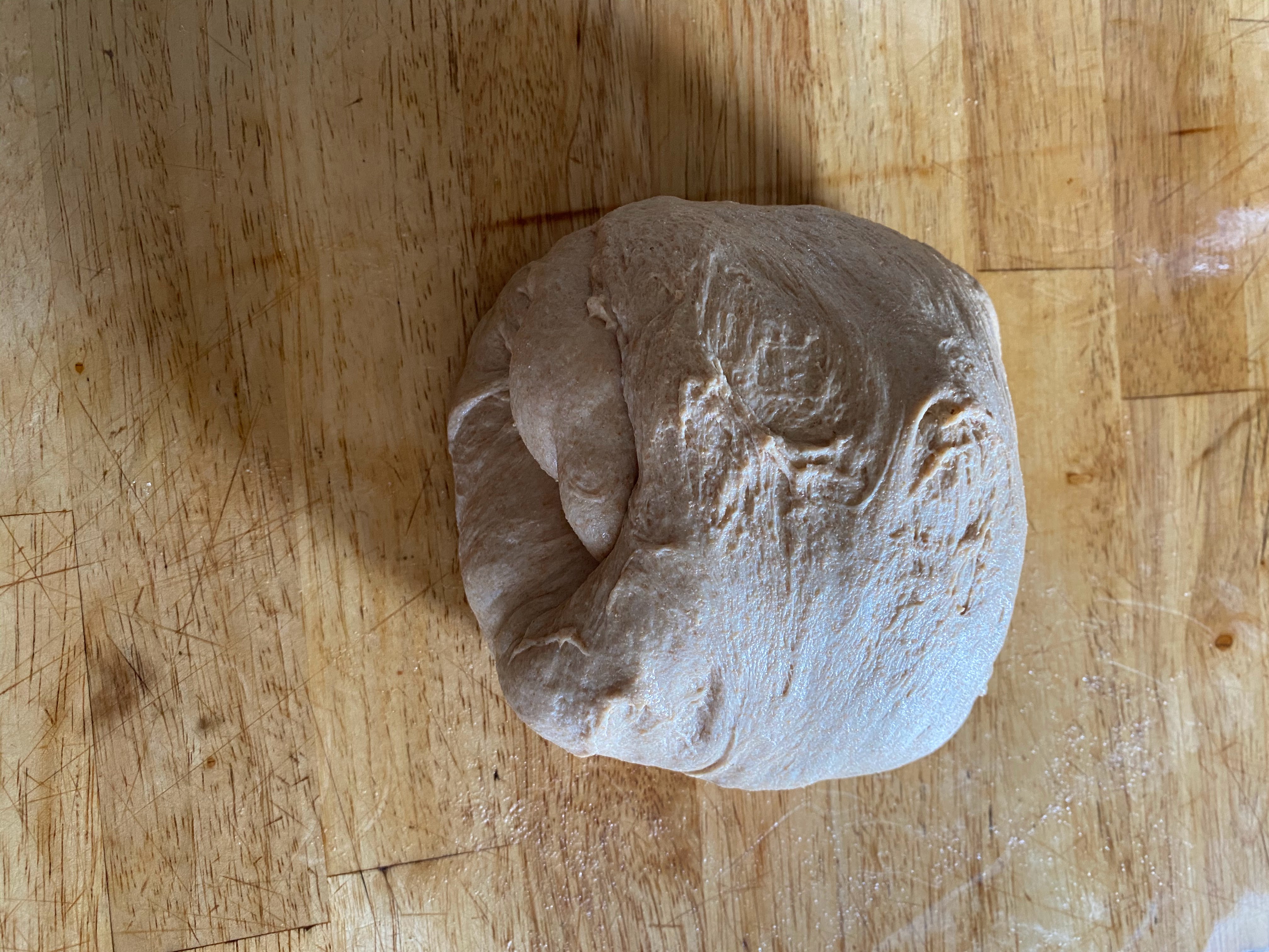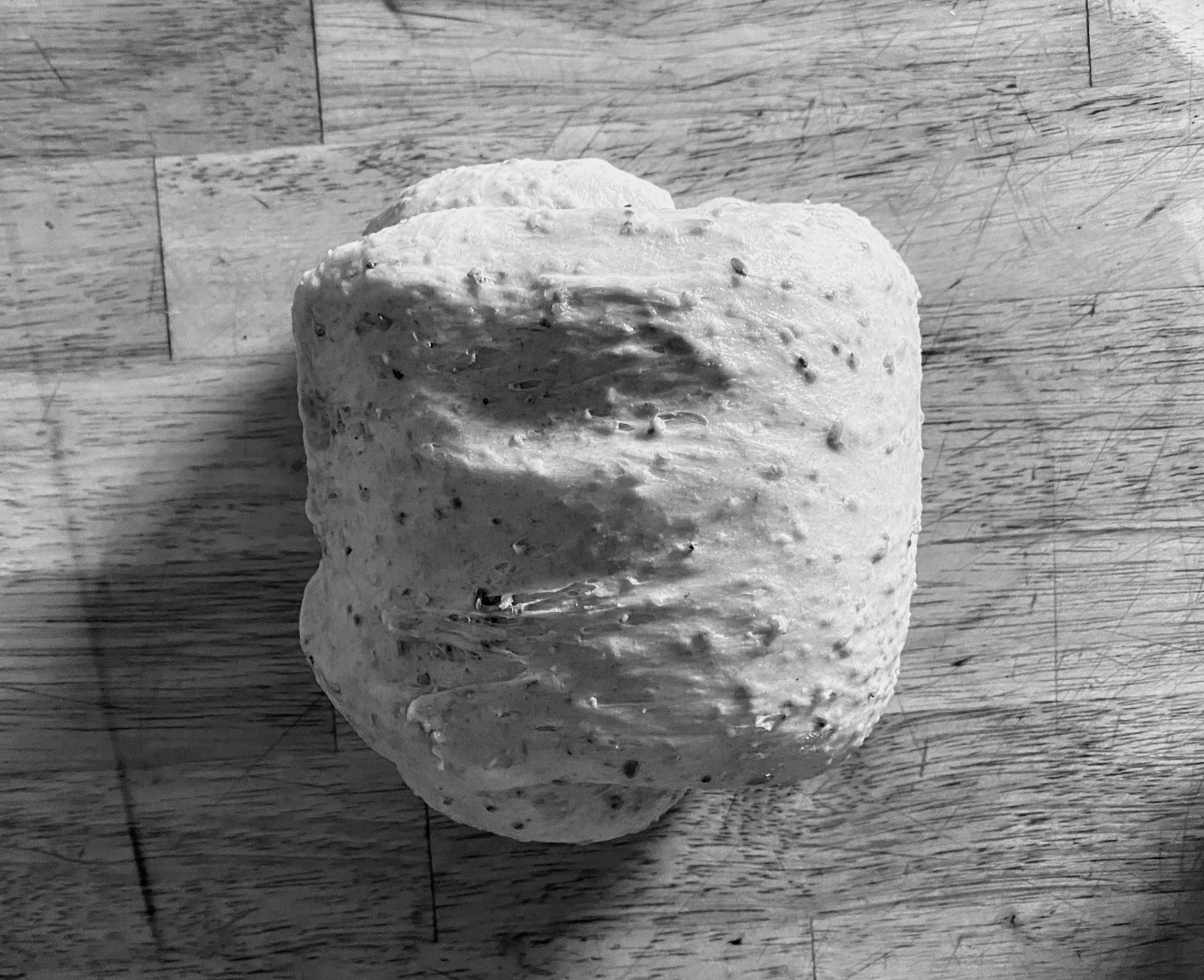 - Turn over, and cup the dough with your hands and rotate, pushing the the sides down and under a bit to make the surface taut.