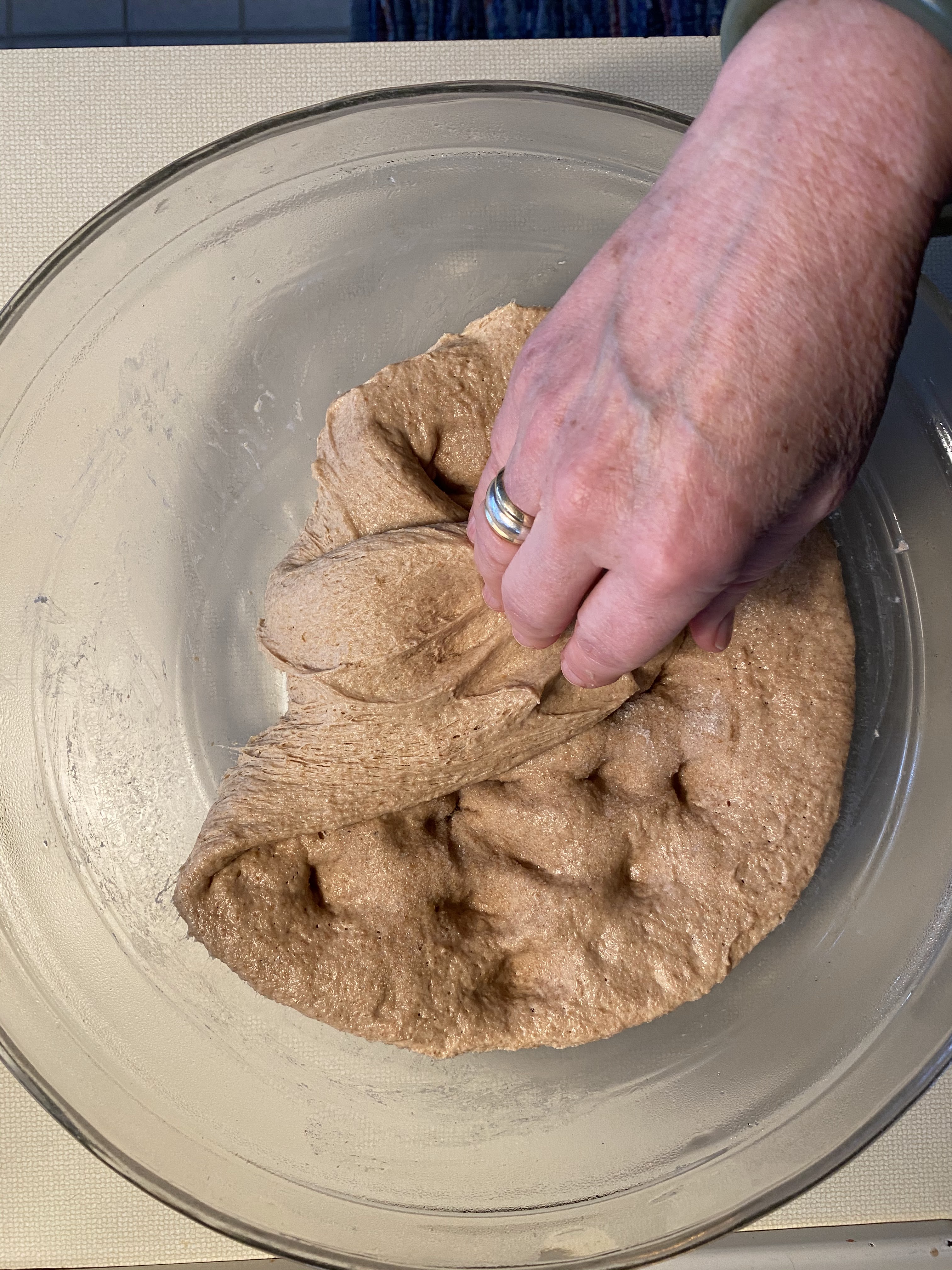 - Repeat #1 and #2 three more times for a total of four stretch and folds, and four 30-minute rests.