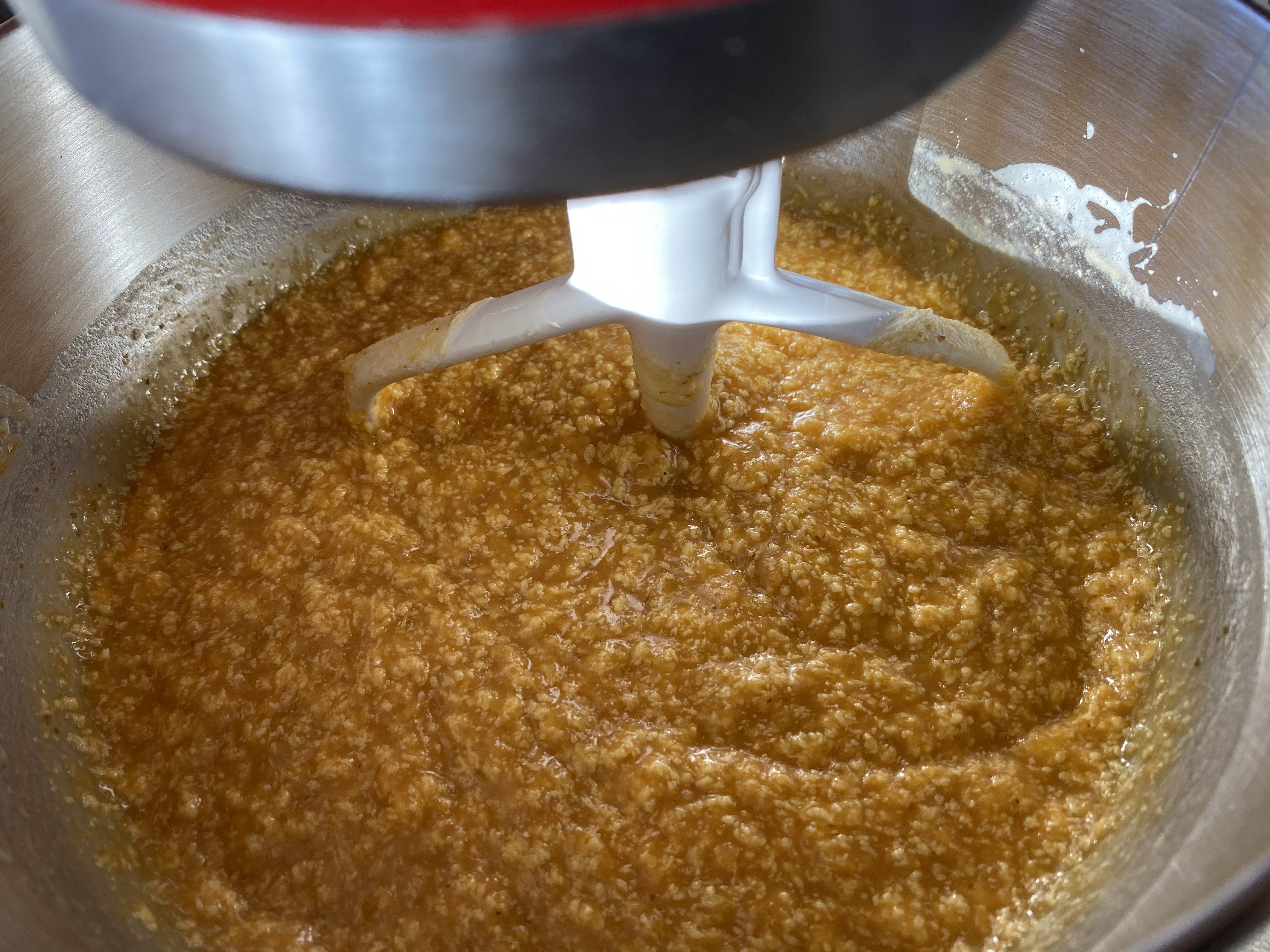 - Add the dry ingredients into the wet in batches, alternating with the eggnog, and mixing to combine after each addition.