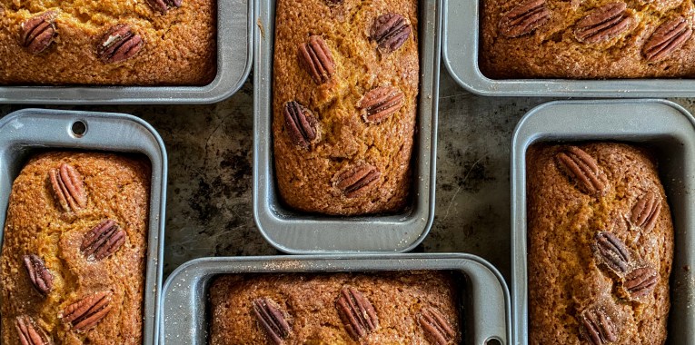 - Butter and flour an 8.5″ x 4.5″ loaf pan and preheat oven to 350.