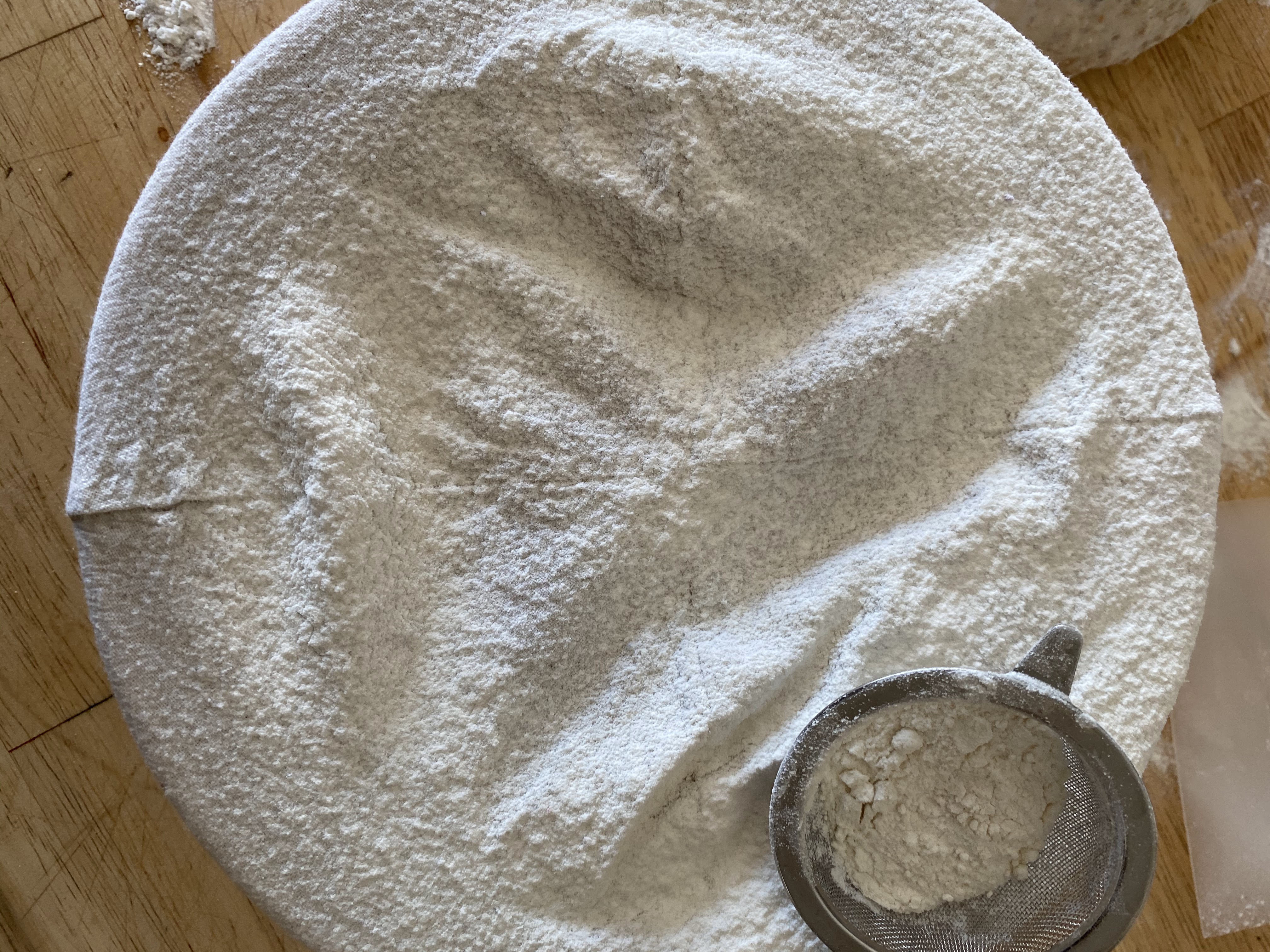 - Scrape dough out of bowl into a very well floured surface, about 2 level tablespoons worth.