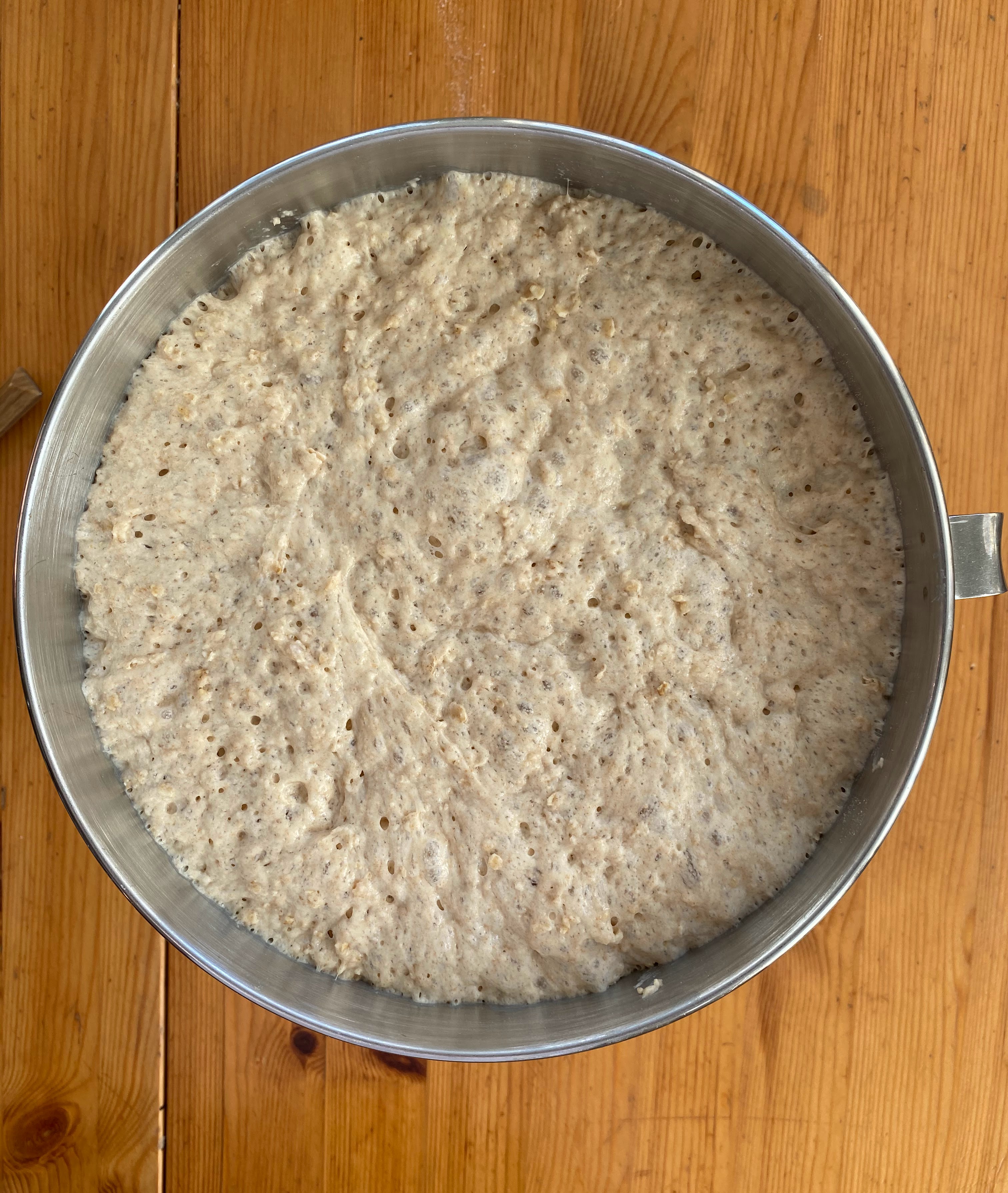 - Scrape sides down to clean it off and incorporate all the dough into one place. It’s very wet and sticky, so that’s fine.
