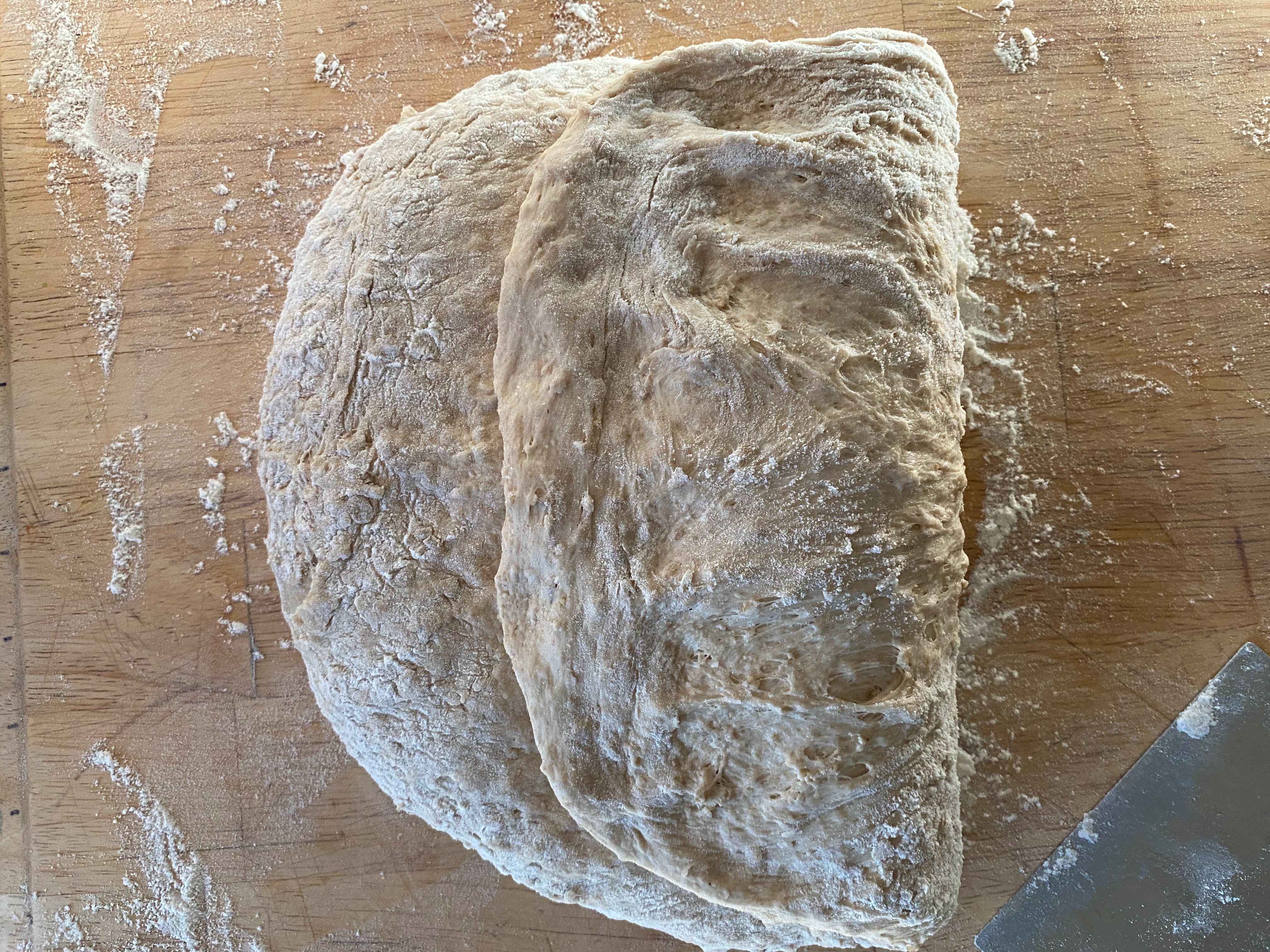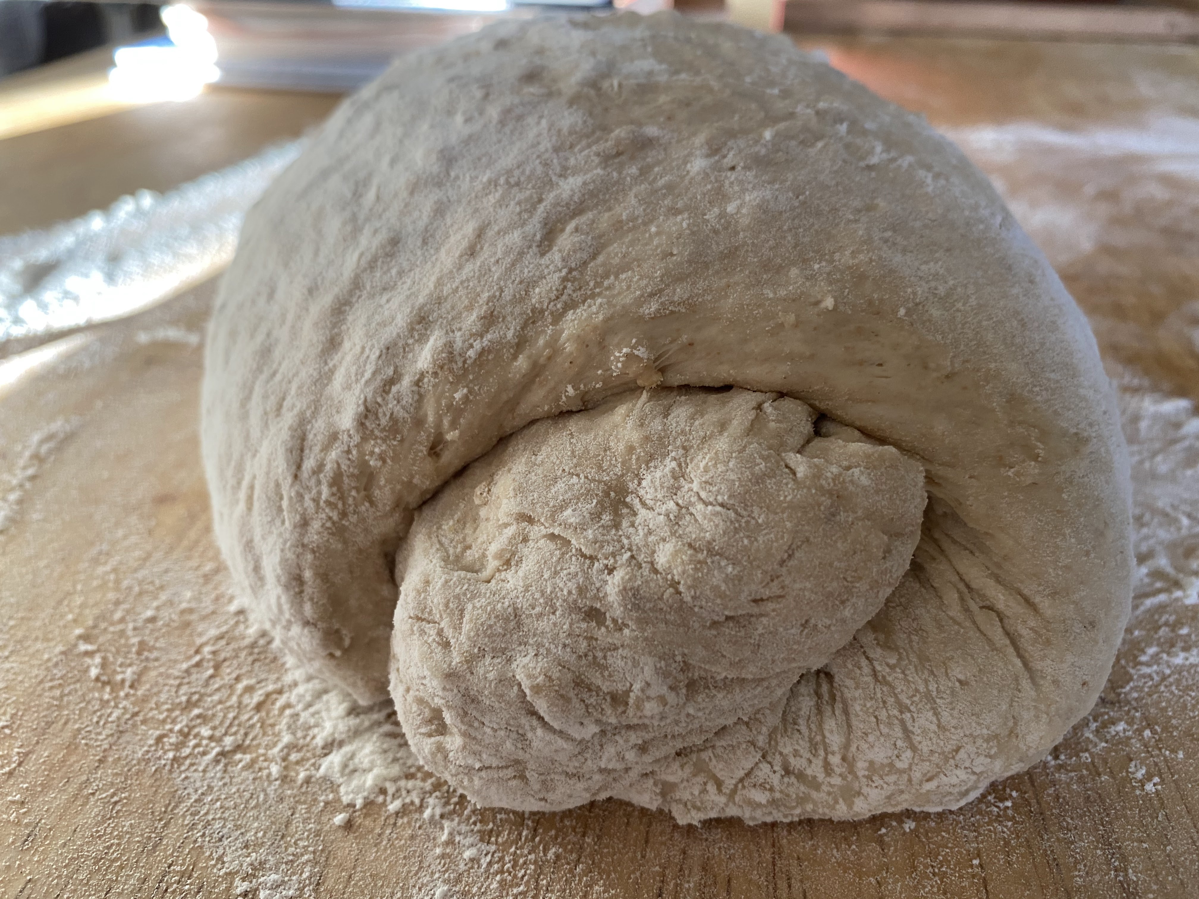 - Seperate dough into into seven pieces, six weighing 110g and one a bit larger, weighing 124. (Total weight should be around 784g.)