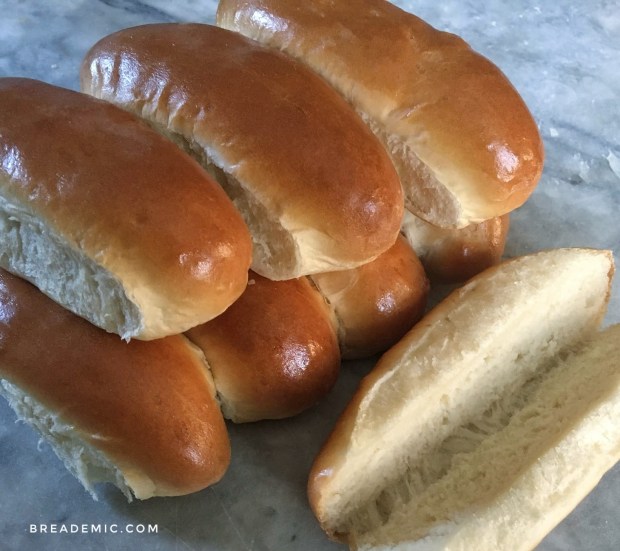 USA: Although the Germans have been putting their sausages in bread long before the Americans, the buns used for American hot dogs came to be when Mr. Charles Feltman invented an elongated bun on Coney Island in 1871. I love this recipe; it produces soft, squishy buns in under an hour. It’s a great dough, easy to knead by hand, so good for beginning bakers!