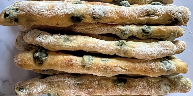 ITALY: These oven-baked wider-than-grissinis (Italian breadsticks) are inspired by the traditional long and thin Italian sfilatino which is similar to a French baguette. These were so much fun to make; there’s no kneading involved because the dough is so wet. It won’t seem like you can actualy shape the sticks from this wet, airy dough, and lift them onto the baking sheet, but follow along with the video instructions and you’ll see that it does, in fact, work.
