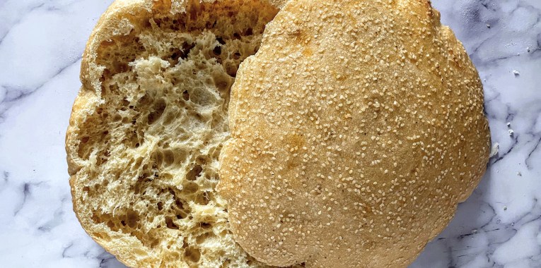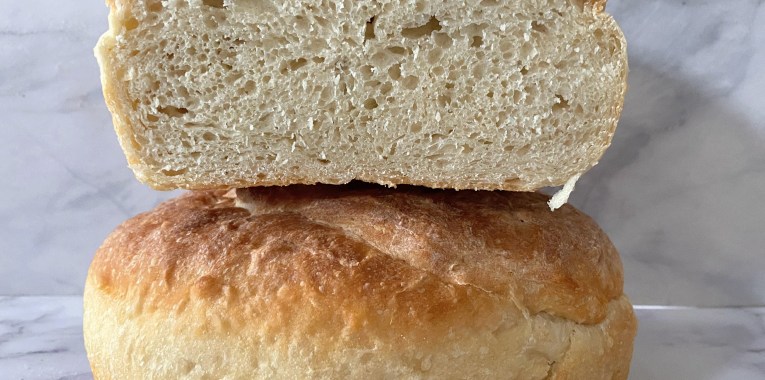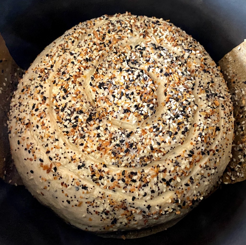 Want the savory punch of a bagel without the time-consuming process of either baking them yourself or going out to get some? Then this bread is for you – delicious, easy and satisfying. It does require an overnight rest, but after that, you don’t need to spend much time on it at all. The Everything Bagel seasoning is mixed into the dough in addition to being sprinkled on top, making it the perfect foil for some avocado toast. This is one of my favorite breads so far!