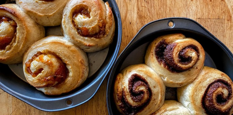 These “Perfectly Pillowy Cinammon Rolls” are King Arthur Baking Company’s 2020 Recipe of the Year. What really makes them stand out is that they can be made a day (or two or three) ahead of time without losing their fluffy structure. I read all 389+ comments so you don’t have to, and listed reviewers’ tips that I found most useful. My advice? Make half with orange marmalade — you won’t regret it! And, yes, they do have recipes for two icings; I just forgot to take a photo.