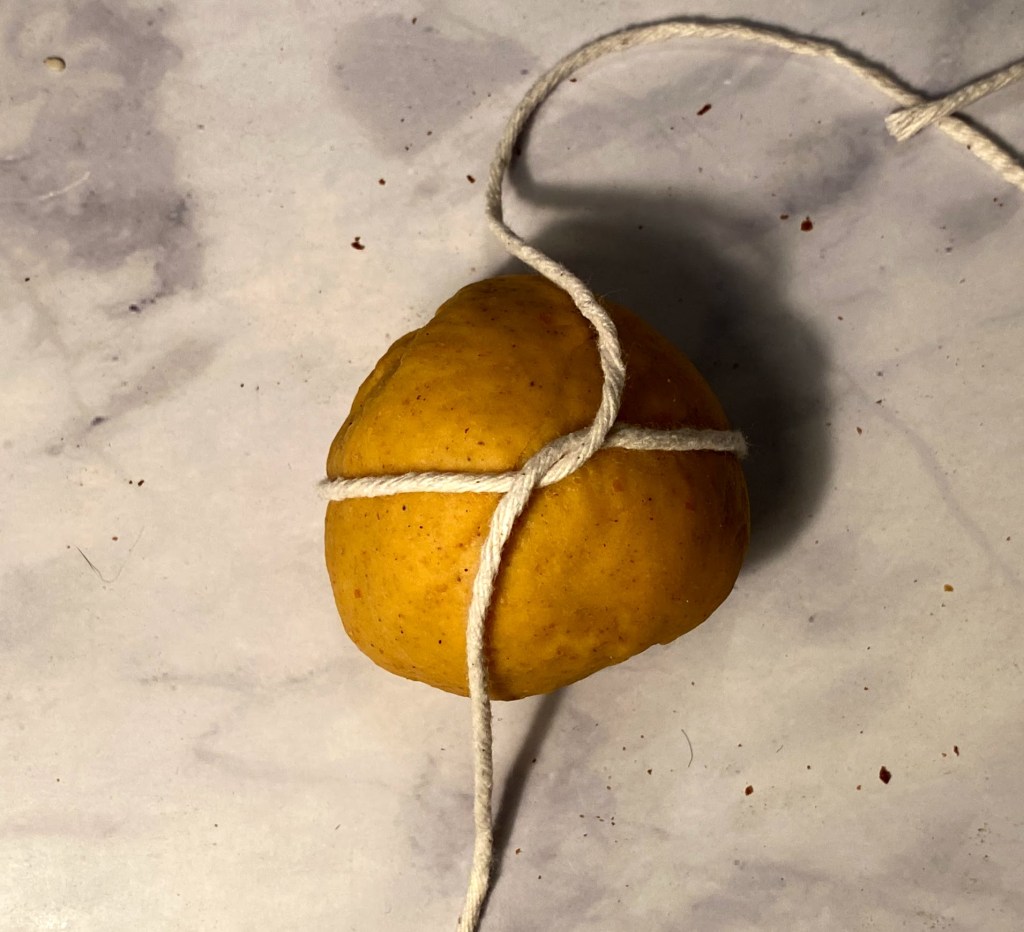 - 8 whole cloves or pecans and string (10 pices about 27″ long)
